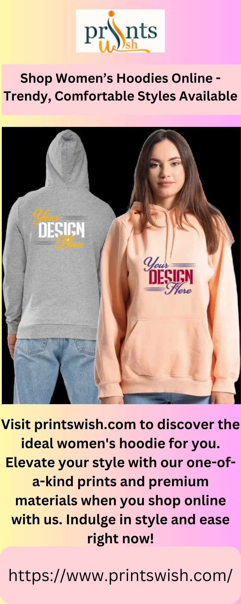 Visit printswish.com to discover the ideal women's hoodie for you. Elevate your style with our one-of-a-kind prints and premium materials when you shop online with us. Indulge in style and ease right now!